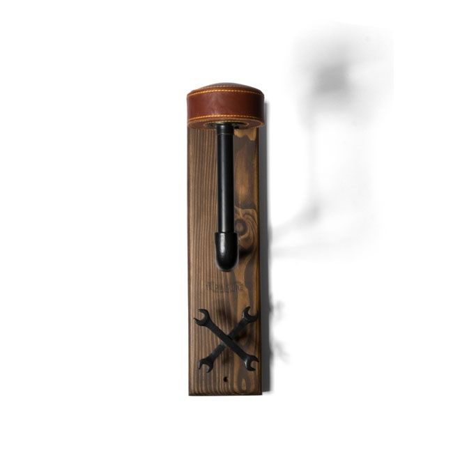 Every helmet deserves its own space, so mount it on the wall with this Trip Machine helmet hanger. Keep all your riding gear organized and out of the way—a great way to store your helmet, gloves, jacket, and keys. It easily mounts to the wall using 2 screws included in the package. Carefully designed with ample space between the back of the helmet and the wooden base, impeccably crafted with antique-finished wood, matte black iron, and premium leather. A classy addition to a garage, man cave, or hallway.